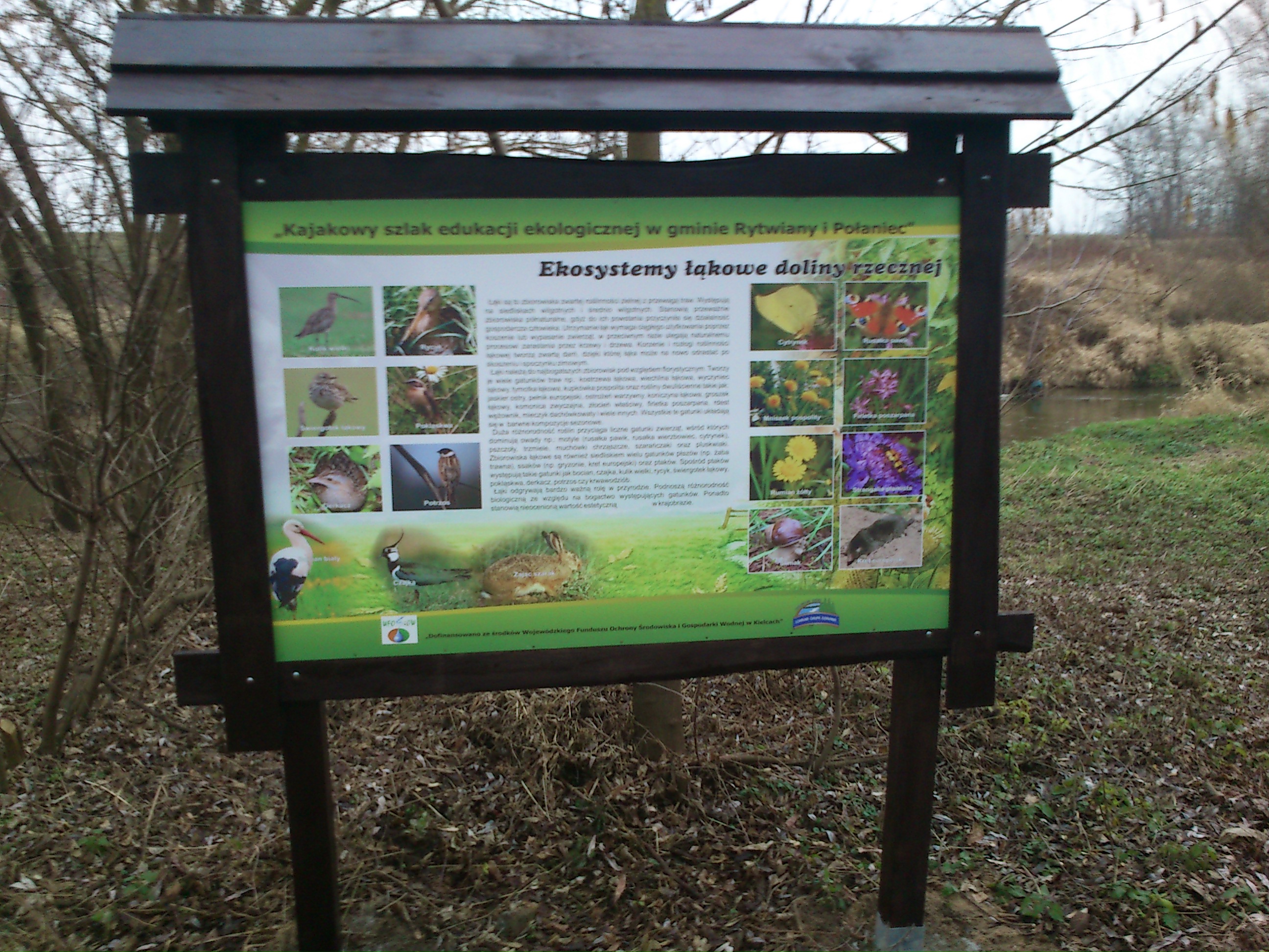Nowa ścieżka edukacyjna powstała w ramach projektu pn. „Kajakowy szlak edukacji ekologicznej na trasie gmina Rytwiany – gmina Połaniec” realizowanego przez Lokalną Grupę Działania – Dorzecze Wisły, współfinansowanego ze środków Wojewódzkiego Funduszu Ochrony Środowiska w Kielcach. Ekologiczna ścieżka dydaktyczna stanowi formę uzupełnienia i uatrakcyjnienia wyznaczanego szlaku kajakowego i daje dodatkowe możliwości aktywnej turystyki. Projekt ma na celu promocję walorów przyrodniczych również w procesie dydaktycznym w szkołach oraz do celów turystyki indywidualnej i rodzinnej, pieszej i kajakowej. Zajęcia edukacyjne, czy nawet czas wolny spędzony w terenie pozwolą na bezpośredni kontakt z przyrodą. Wyznaczona ścieżka jest dostępna dla wszystkich mieszkańców, jak i osób odwiedzających nasz obszar. Opisy ścieżek są w formie ciekawego materiału edukacyjnego - tablice informacyjne duże - ogólne informacje o środowisku przyrodniczym zlokalizowane w głównych punktach widokowych oraz małe tabliczki opisujące konkretne gatunki roślinne i zwierzęce.