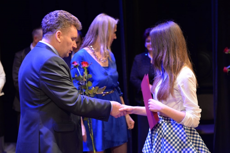 Podczas Uroczystej Sesji doceniono także wkład i zaangażowanie w rozwój kulturalny gminy Połaniec dzieci i młodzieży ze Szkoły Podstawowej w Połańcu, zespołu Placówek Oświatowych w Ruszczy oraz Centrum Kultury i Sztuki. Łącznie przyznano 43 stypendia dla dzieci i młodzieży, która swoimi imponującymi wystąpieniami artystycznymi uświetnia każdą uroczystość na terenie naszej gminy oraz poza nią. Po spektakularnych wystąpieniach artystycznych, Dyrektor Centrum Kultury i Sztuki w Połańcu – Joanna Juszczyńska zaprosiła na scenę wszystkich małych i dużych artystów z Centrum Kultury i Sztuki, którzy otrzymali z rąk Burmistrza – Jacka Tarnowskiego, Przewodniczącego Rady Miejskiej – Stanisława Lolo oraz zacnych gości stypendia artystyczne za osiągnięte wysokie wyniki w dziedzinie artystycznej i aktywną promocję gminy Połaniec. Podziękowano również instruktorom za poświęcony czas i pracę z młodymi artystami. Z kolei Burmistrz Miasta i Gminy Połaniec - Jacek Tarnowski i Przewodniczący Rady Miejskiej - Stanisław Lolo w podziękowaniu za wsparcie działań kulturalnych otrzymali upominki od młodzieży.