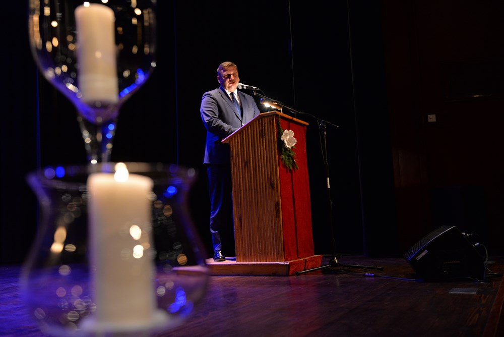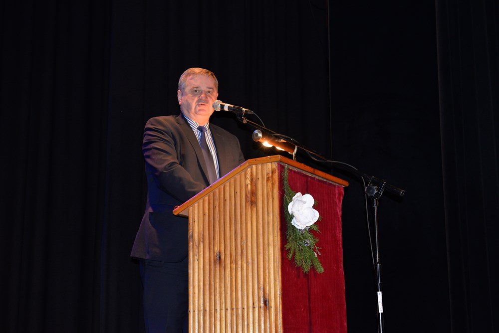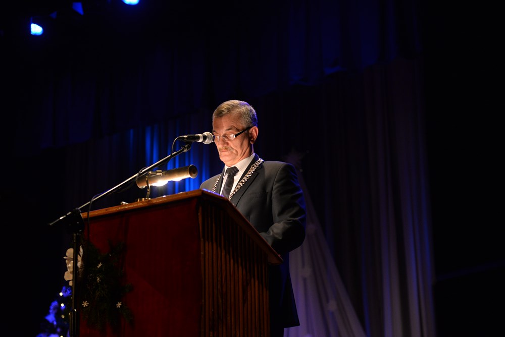 W wieńczącym rok 2015 przemówieniu Przewodniczący Rady Miejskiej – Stanisław Lolo gorąco powitał współgospodarzy uroczystości - Burmistrza Miasta i Gminy Połaniec - Jacka Tarnowskiego i Radnych Rady Miejskiej w Połańcu oraz wszystkich zgromadzonych gości na Uroczystej Sesji podsumowującej mijający rok, która stała się już u nas tradycją. W swoim przemówieniu podkreślił, że rok 2015 był czasem intensywnego rozwoju dla gminy Połaniec – zrealizowano bowiem liczne, bardzo istotne dla miasta i gminy inwestycje. Podkreślił, że dobra współpraca z władzami różnych szczebli przyczyniła się do zamierzonych osiągnięć, a co za tym idzie rozwoju naszego miasta, powiatu, regionu. W swoim przemówieniu Przewodniczący wyraził radość z kolejnego wspólnego spotkania. „Cieszę się, że jak co roku mamy możliwość spotkać się w tak zacnym gronie, by w oczekiwaniu na zbliżające się nadejście Nowego Roku, dzisiaj móc przeżyć razem choć namiastkę tak magicznego czasu, jakim są również Święta Bożego Narodzenia, w których atmosferze jeszcze żyjemy - pełni radości, refleksji i nadziei na lepsze jutro. Dziś, w tak uroczystej chwili, mamy możliwość podsumować naszą pracę, którą włożyliśmy w rozwój naszej gminy w mijającym roku – pracę nas wszystkich …, ale również spojrzeć odważnie w przyszłość. W ostatnim czasie natrafiłem na jakże wymowne słowa brytyjskiego pisarza i polityka – Marka Fishera, które pozwolę sobie państwu zacytować: ,,Ludzie, którzy tracą czas czekając, aż zaistnieją najbardziej sprzyjające warunki, nigdy nic nie zdziałają. Najlepszy czas na działanie jest teraz!"... Dziś z radością i dumą mogę stwierdzić, że samorząd Połańca nigdy nie czeka na sprzyjające warunki, ale zawsze jest o krok do przodu, wychodząc naprzeciw oczekiwaniom mieszkańców i ich potrzebom, począwszy od najmłodszego pokolenia, poprzez zapewnienie młodym – już dorosłym ludziom lepszego startu, jak również starszym osobom potrzebującym wsparcia, by nie czuli się bezsilni i osamotnieni. Tym bardziej jestem dumny z tego, jak wiele przedsięwzięć w roku 2015 udało nam się zrealizować i jak wiele zapoczątkować, co będzie również owocować w przyszłości” – mówił Przewodniczący Rady Miejskiej.
