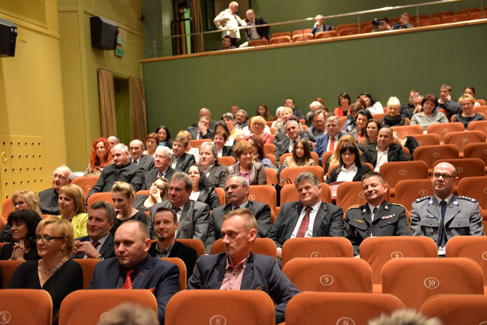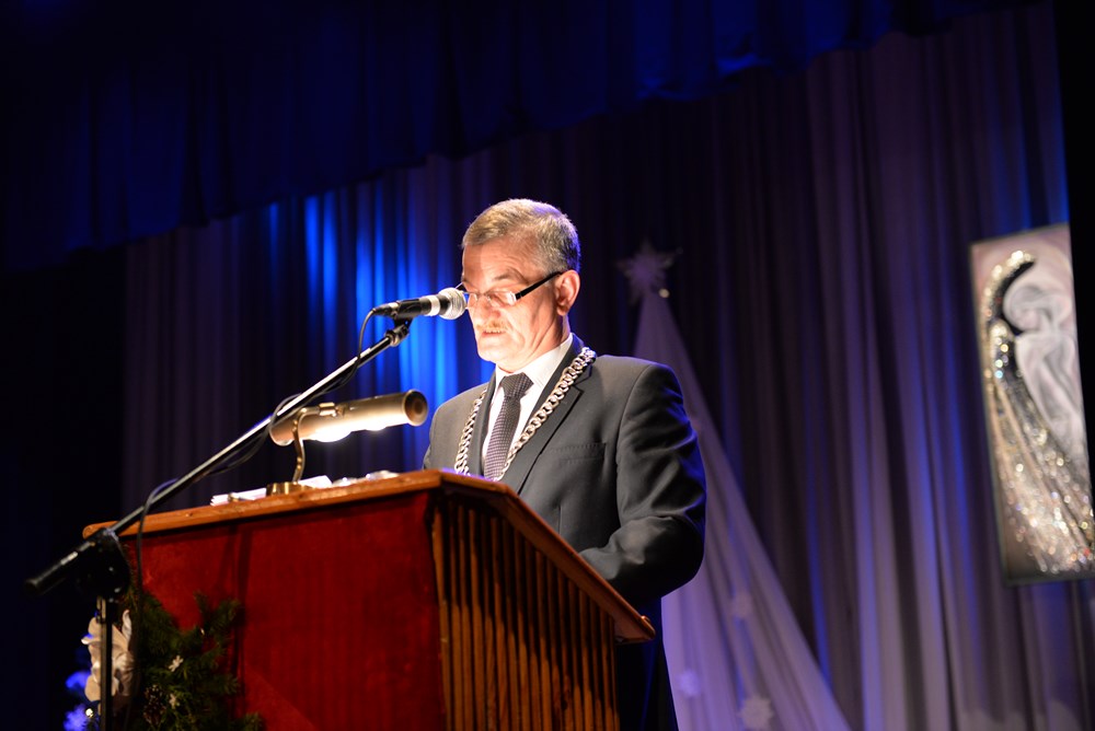 Następnie głos zabrał Burmistrz Miasta i Gminy Połaniec – Jacek Tarnowski, który po przywitaniu zaproszonych gości podziękował wszystkim osobom, które przez wiele lat pomagają gminie Połaniec, tym samym przyczyniając się do jej znacznego rozwoju. W swym przemówieniu podkreślał, że to co zostało dotychczas osiągnięte było możliwe dzięki współpracy bardzo wielu osób i instytucji na rzecz lokalnej społeczności – w tym współpracy mieszkańców, władz gminy Połaniec z władzami województwa świętokrzyskiego oraz pomyślnie pozyskanym środkom zewnętrznym na poszczególne cele. Te słowa podziękowań za okres wytężonej pracy, współpracy, pomocy dla samorządu Połańca zostały skierowane w stronę marszałka województwa, pracowników urzędu marszałkowskiego na ręce obecnego na sali Członka Zarządu – Marka Szczepanika. Burmistrz podkreślił, że Miasto i Gmina Połaniec optymalnie wykorzystała możliwości, dzięki dużej pomocy od marszałka. Podziękowania skierowane zostały dla Prezesa WFOŚiGW – Andrzeja Pałysa, dla człowieka który pomaga każdemu samorządowi poprzeć słowo, zaangażowanie czy poradę. W przypadku Połańcu poświęcił niejednokrotnie wiele czasu, by nauczyć zdobywać środki dla rozwoju gminy. Burmistrz przedstawił owoce współpracy ze starostwem powiatowym dziękując na ręce starosty i Radnych Powiatowych za pomoc osobistą i zaangażowanie dla Połańca. Za bezpieczeństwo mieszkańców złożono podziękowania służbom mundurowym na ręce obecnych przedstawicieli policji i straży za mocną współpracę, wykonaną pracę w ramach wspólnie realizowanych działań i pracę, która przyczynia się do zapewnienia bezpieczeństwa mieszkańcom całego powiatu. Zostały złożone także deklaracje ze strony samorządu połanieckiego o dalszą dbałość o zapewnienie sprzętu i wyposażenia dla jednostek. Padły słowa podziękowań dla przedsiębiorców, przedstawicieli zakładów pracy za trud funkcjonowania gminy na ręce prezes największego zakładu na terenie Połańca – Alfredy Świtek. Słowa wdzięczności za dobre słowo burmistrz złożył księżom proboszczom. Za współpracę, odpowiednie decyzje podziękowano przewodniczącym osiedli, sołtysom, mieszkańcom. Szczególne słowa uznania zostały skierowane dla Przewodniczącego Rady Miejskiej i całej Rady Miejskiej w Połańcu. Dla kierownik biura ARiMR słowa uznania za pomoc rolnikom. Wszelkie podziękowania popłynęły do pracowników gminy i jednostek oraz dyrektorów i kierowników jednostek działających na terenie gminy na ręce Skarbnik – Małgorzaty Żugaj. Jak wyjaśnił burmistrz duże środki finansowe przekazywane są na działalność jednostek są po to, aby wychowanie, oświata, kultura, dbanie o osoby chore, sport stały na najwyższym poziomie. Za współpracę, za wzajemne wspieranie się dwóch gmin podziękowano gościom z gminy Borowa z prośbą o przekazanie słów uznania mieszkańcom gminy Borowa.
