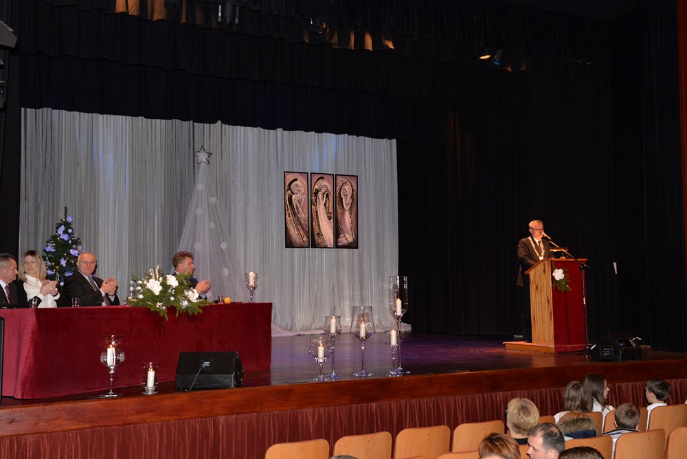 Po przemówieniach współgospodarzy uroczystości, głos zabierali kolejno zaproszeni goście. Jako pierwszy na mównicy miejsce zajął Prezes WFOŚiGW – Andrzej Pałys podkreślając dobrze wykorzystaną szansę przez samorząd Połańca w rozwój miasta i gminy przede wszystkim poprzez myślenie strategiczne – odpowiednie przygotowanie terenów inwestycyjnych. Prezes wspomniał, że są plany wprowadzenia projektów ukierunkowanych na przedsiębiorców, na gminy, ale także od stycznia 2016 r. będzie pakiet dla termomodernizacji, niskiej emisji czy źródeł odnawialnych. Jak podkreślił prezes współpracę z samorządem Połańca traktuje jako zaszczyt. Na koniec przemówienia złożył mieszkańcom Połańca zdrowia i szacunku dla samego siebie i innych. Następnie pozdrowienia od marszałka – Adama Jarubasa przekazał Członek Zarządu – Marek Szczepanik, który pogratulował osiągnięć na polu inwestycyjnym, życzył realizacji wszystkich zamierzeń i sukcesów samorządowych, jak również powodzenia w życiu osobistym dla mieszkańców Połańca. Wyraził także nadzieję na owocne wyniki wspólnej pracy dwóch stron. Słów podziękowań i gratulacji w kierunku samorządu połanieckiego za wsparcie powiatu nie szczędził Starosta – Michał Skotnicki dokonując podsumowania wspólnych przedsięwzięć. Jak zaznaczył, te wszystkie sukcesy roku 2015 nie byłyby możliwe gdyby nie odpowiednia współpraca na szczeblu lokalnym, powiatowym i wojewódzkim. Było wiele rozmów, pomocy przy załatwianiu spraw, realizacji wielu wspólnych zadań. Starosta podziękował za zaufanie i zapewnił, że w nowej perspektywie będzie duzo nowych inwestycji. Starosta określił Połaniec jako wiodącą gminę w naszym powiecie jeśli chodzi o rozwój. W tym miejscu skierował podziękowania na ręce prezes – Alfredy Świtek. Starosta - Michał Skotnicki na zakończenie życzył zdrowia i pomyślności, oby 2016 był lepszy niż 2015. W dalszym przebiegu zgromadzeni na sali usłyszeli ciepłe słowa od Prezes - Alfredy Świtek pod adresem samorządu za wiele osiągnięć. Prezes wspomniała o aktualnej sytuacji i zmianach na rynku energii elektrycznej. Były też słowa podziękowania dla województwa, powiatu, lokalnego samorządu za merytoryczne podejście, co daje możliwość upraszczania procedur i szybkie podejmowanie działań. Na koniec prezes życzyła realizacji ambitnych celów i zamierzeń, a w życiu osobistym dla wszystkich zdrowia, realizacji marzeń, optymizmu na 2016 rok. W imieniu duchowieństwa głos zabrał ks. proboszcz - Witold Dobrzański, który zwracając się do władz wojewódzkich, powiatowych i miejsko - gminnych oraz wszystkich zgromadzonych złożył najlepsze życzenia, a w szczególności dobrych osiagnięć dla pracowników elektrowni. Na nowy rok życzył dobra, szczęścia, zdrowia, pomyślności, poszanowania praw, wszelkiego dobra, realizacji planów, potrzeby wspólnej modlitwy, ... bo każdy z nas potrzebuje miłosierdzia Pana Boga. Na zakończenie przemówienia życzył zdrowia i pomyślności. W dalszej kolejności uroczystości za rzeczową współpracę z policją podziękował Komendant Powiatowy Inspektor - Tomasz Śliwiński na ręce burmistrza i przewodniczącego, za kształtowanie właściwych postaw ze strony samorządu Połańca, zrozumienie, że poprzez wspólne realizowanie przedsięwzięć wszyscy będziemy czuli się bezpiecznie. Podziękowania za wsparcie finansowe, za wspólne inicjatywy służące mieszkańcom, za prowadzenie miejskiego monitoringu, wsparcie na zakup pojazdów, co wpływa na skuteczność działania i poprawę bezpieczeństwa. Mieszkańcom komendant złożył podziękowania, za otwarcie podczas spotkań, zgłaszanie problemów. Do wszystkich również popłynęły życzenia noworoczne. W imieniu Straży Państwowej – głos zabrał Komendant Powiatowy starszy brygadier - Grzegorz Ciepiela. Podsumował w swojej wypowiedzi poziom bezpieczeństwa, w tym rozwoju jednostek straży określając go jako wzorcowy w naszym powiecie i z tego tytułu złożył podziękowania w stronę samorządu połanieckiego, marszałkowi, staroście. Podziękował za wspólne inicjatywy w zakresie bezpieczeństwa poprzez realizację systemu ratowniczego. Poprzez łączenie wszystkich elementów poziom przygotowania sprzętowego, ludzkiego, technicznego pod względem szkoleń w Połańcu jest na najwyższym poziomie. Komendant pogratulował osiągnięć gminnych i podziękował przedstawicielom wszystkich szczebli za owocną współpracę. Na koniec życzył spełnienia wszystkich oczekiwań w 2016 Roku. Po powyższych przemówieniach Przewodniczący Rady Miejskiej - Stanisław Lolo podziękował wszystkim za obecność i zamknął uroczystą sesję.