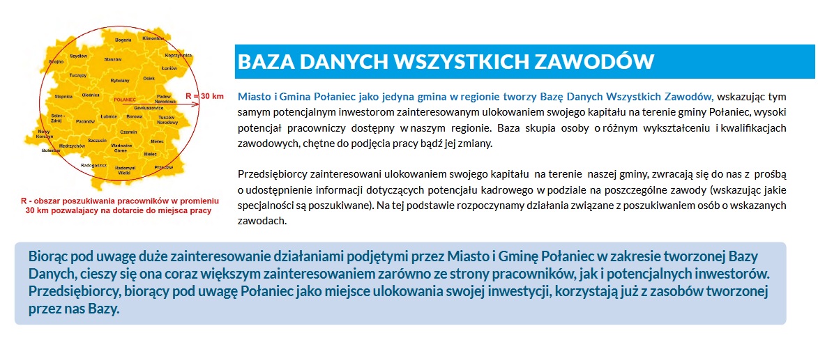 - pozyskiwania niezbędnej kadry pracowników (korzystanie z tworzonej przez Miasto i Gminę Połaniec Bazy Danych Wszystkich Zawodów);