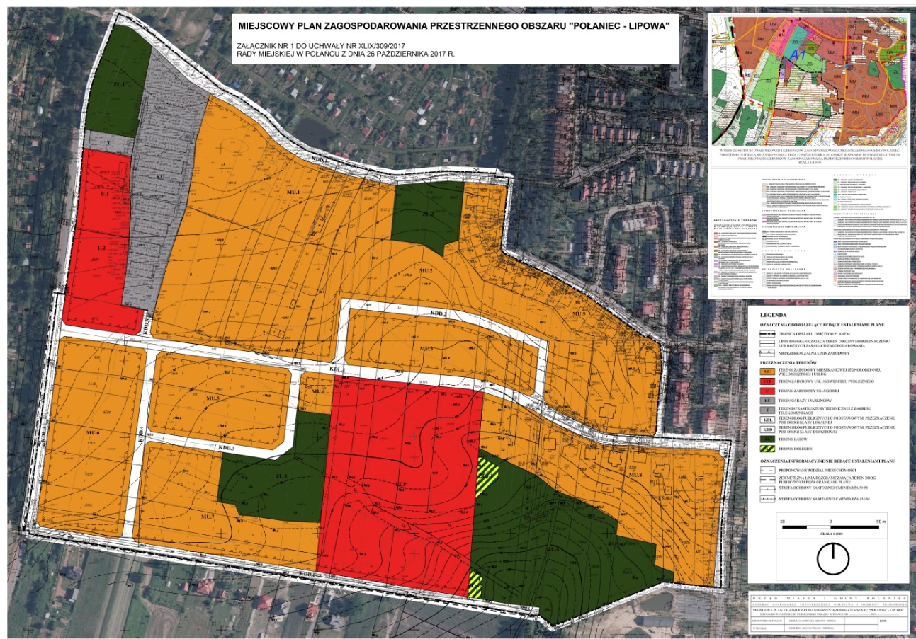 - mamy aktualny Miejscowy Plan Zagospodarowania Przestrzennego przyjęty uchwałą NR XLIX/309/2017 Rady Miejskiej w Połańcu z dnia 26 października 2017 r. w sprawie uchwalenia miejscowego planu zagospodarowania przestrzennego obszaru „Połaniec -Lipowa” wskazujący m.in. tereny zabudowy mieszkaniowej jednorodzinnej, wielorodzinnej i usług (MU);