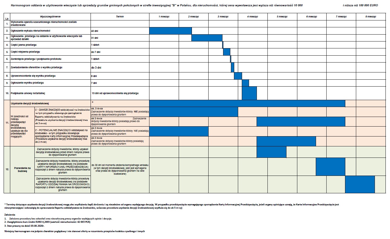 1. Harmonogram sprzedaży gruntów gminnych położonych w strefie inwestycyjnej „B” w Połańcu, dla nieruchomości, której cena wywoławcza jest wyższa niż równowartość 10 000 i niższa niż 100 000 EUR.