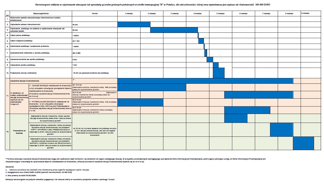 2. Harmonogram sprzedaży gruntów gminnych położonych w strefie inwestycyjnej „B” w Połańcu, dla nieruchomości, której cena wywoławcza jest wyższa niż równowartość 100 000 EURO.