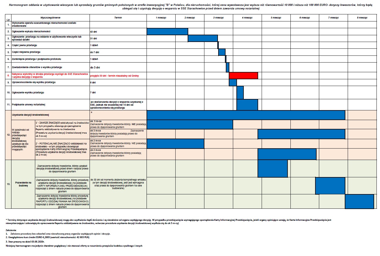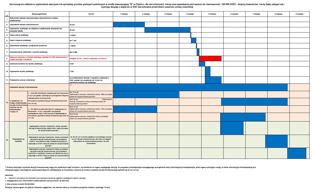 4. Harmonogram sprzedaży gruntów gminnych położonych w strefie inwestycyjnej „B” w Połańcu, dla nieruchomości, której cena wywoławcza jest wyższa niż równowartość 100 000 EURO- dotyczy Inwestorów, którzy będą ubiegać się i uzyskają decyzje o wsparciu w SSE "Starachowice" przed dniem zawarcia umowy notarialnej.
