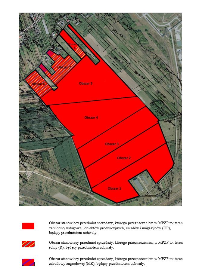 Przeznaczenie tego obszaru w MPZP to: teren zabudowy usługowej, obiektów produkcyjnych, składów i magazynów- symbol w MPZP - UP oraz tereny rolne symbol w MPZP –R .