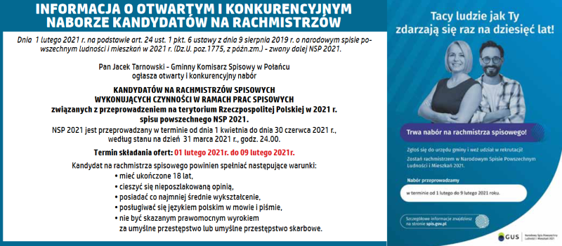 NABÓR NA RACHMISTRZA W GMINIE POŁANIEC W NARODOWYM SPISIE POWSZECHNYM LUDNOŚCI I MIESZKAŃ