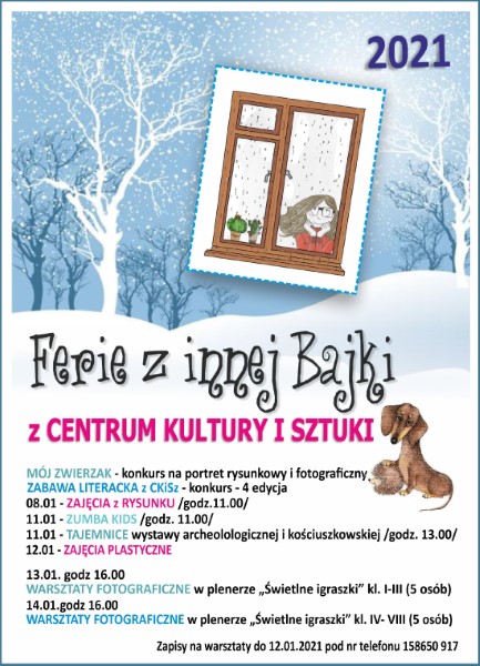 Grafika zawiera program zajęć CKiSz w Połańcu na okres ferii zimowych.