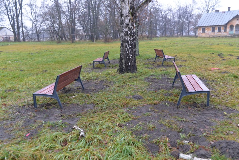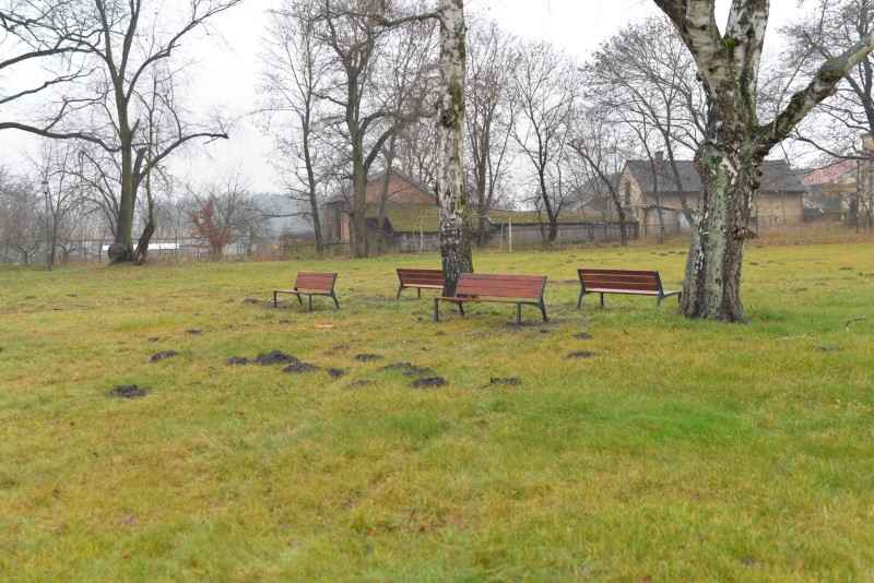 fot. Mała architektura (ławki) w parku w Ruszczy