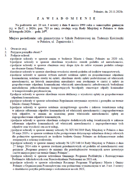 SESJA RADY MIEJSKIEJ W POŁAŃCU