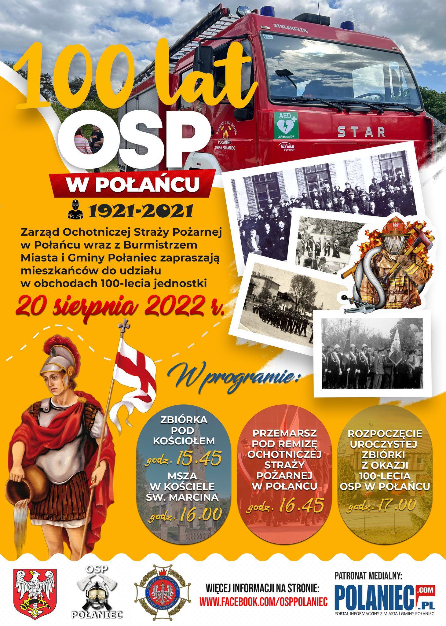 Piękny jubileusz 100-lecia powstania, obchodzi Ochotnicza Straż Pożarna w Połańcu. Z tej okazji zorganizowana będzie uroczystość. Jubileusz 100-lecia OSP to doskonała okazja, aby wyrazić wdzięczność naszym Druhom, którzy niejednokrotnie narażają swoje życie dla ratowania naszej lokalnej społeczności. Strażacy bardzo aktywnie uczestniczą w życiu społecznym naszej gminy – możemy Ich spotkać podczas akcji, a także w czasie uroczystości państwowych i kościelnych.