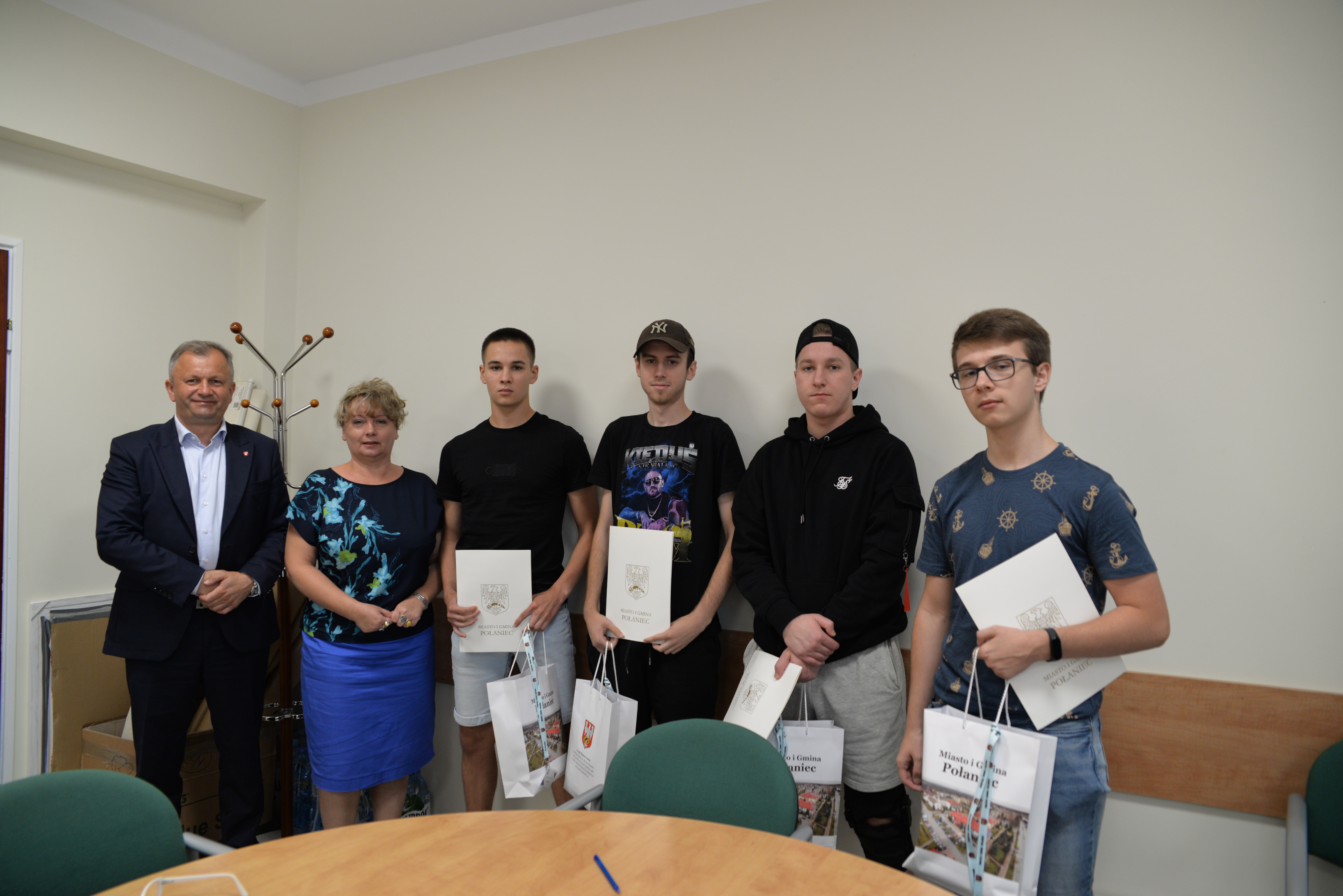 Połaniecki magistrat kontynuuje program pn. „Wakacyjna praca dla młodzieży”, który ma pomóc zdobyć pierwsze doświadczenie zawodowe. Celem jest - wykorzystanie potencjału młodzieży oraz ich zaangażowania do pracy, zagospodarowanie czasu wolnego młodzieży, zapoznanie z funkcjonowaniem jednostek organizacyjnych Gminy czy przygotowanie młodzieży do podjęcia w przyszłości stałej pracy oraz wyrobienie dbałości o dobro wspólne i szacunku do pracy innych. W dniu dzisiejszym kolejna czwórka: Władysław, Łukasz, Jakub i Łukasz zawarli umowy na spotkaniu z Burmistrzem Miasta i Gminy Połaniec – Jackiem Benedyktem Nowakiem. Swoją wakacyjną pracę będą wykonywać w takich jednostkach jak: Centrum Kultury i Sztuki, Ośrodek Sportu i Rekreacji, Miejsko – Gminna Biblioteka.