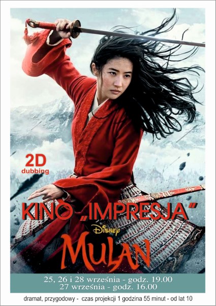 Mulan w kinie Impresja 25,26,28 września o godz. 19.00 i 27 września o godz. 16.00