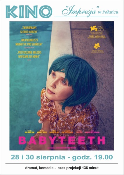 Kino IMPRESJA zaprasza w dniach 28 i 30 sierpnia o godzinie 19:00 na film BABYTEETH. Czas trwania seansu wynosi 136 minut.
