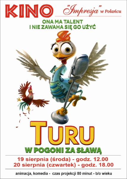 Kino Impresja w Połańcu w dniach 19 sierpnia (środa) o godzinie 12:00 oraz 20 sierpnia (czwartek) o godzinie 18:00 zaprasza na fillm animowany TURU - W POGONI ZA SŁAWĄ.