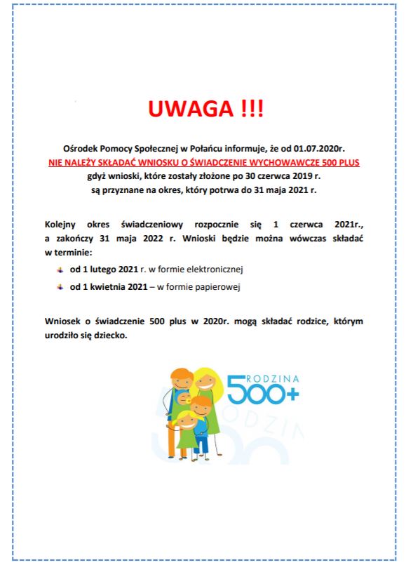 INFORMACJA DLA OSÓB POBIERAJĄCYCH ŚWIADCZENIA "500+" ORAZ "DOBRY START"