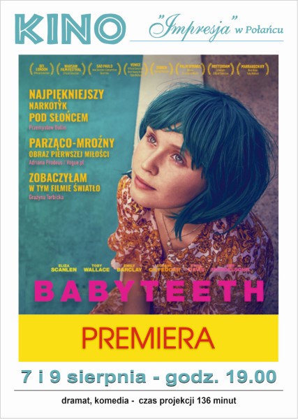 Zaproszenie do kina Impresja w Połańcu na premierę filmu "Babyteeth". Film będzie emitowany w dniach 7 (piątek) i 9 (niedziela) sierpnia o godzinie 19:00.