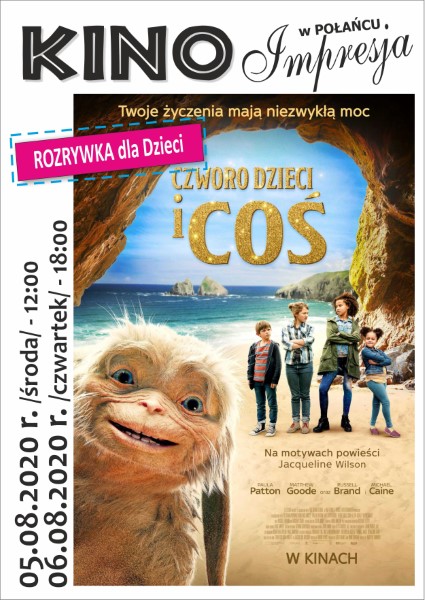 Grafika przedstawia zaproszenie na film familijno - fantastyczny "Czworo dzieci i coś".