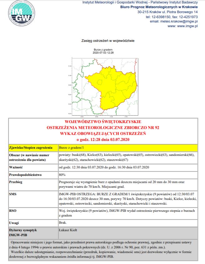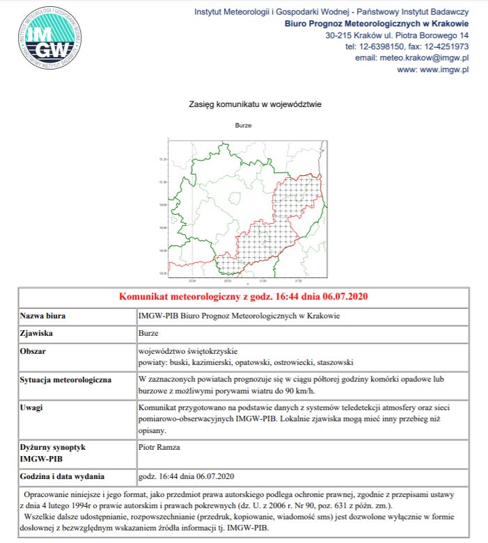 INFORMACJA O NIEBEZPIECZNYM ZJAWISKU