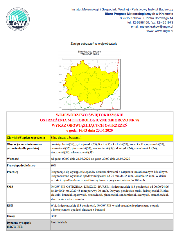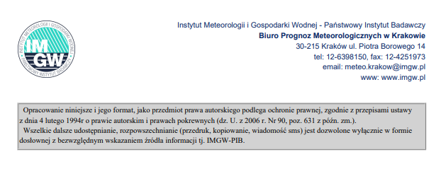 Uwagi: W przypadku istotnych zmian w czasie lub przebiegu zjawiska Ostrzeżenie może ulec zmianie.