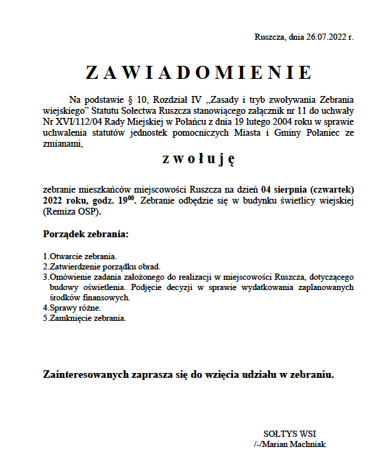 Proszę Państwa ustawa z dnia 11 stycznia 2018 r. o zmianie niektórych ustaw w celu zwiększenia udziału obywateli w procesie wybierania, funkcjonowania i kontrolowania niektórych organów publicznych, nakłada na samorządy obowiązek transmisji, nagrywania i udostępniania nagrań obrad rady gminy,. Art. 20.1b ustawy o samorządzie gminnym stanowi, że obrady rady gminy są transmitowane i utrwalane za pomocą urządzeń rejestrujących obraz i dźwięk. Nagrania obrad są udostępniane w Biuletynie Informacji Publicznej i na stronie internetowej gminy oraz w inny sposób zwyczajowo przyjęty. W związku z powyższym podczas Sesji Rady Miejskiej odbywa się fotografowanie, filmowanie i rejestracja audio osób biorących w nich udział. Pozyskane w ten sposób materiały są eksploatowane na nośnikach lub publikowane w sieci Internet w celu transparentności działań Rady Miejskiej. Biorąc więc udział w Sesji Rady Miejskiej dana osoba musi być świadoma, iż przetwarza się jej wizerunek, tym samym akceptuje niniejsze warunki. Udział w publicznej Sesji Rady Miejskiej, czy wejście na teren obiektu, na którym odbywa się Sesja Rady Miejskiej, skutkuje rozpowszechnianiem wizerunku utrwalonego podczas obrad na podkreślonych polach eksploatacji tj., strona www.portal.polaniec.eu, BIP Urzędu Miasta i Gminy w Połańcu, kanał you tube oraz gazeta w celu transparentności działań Gminy.