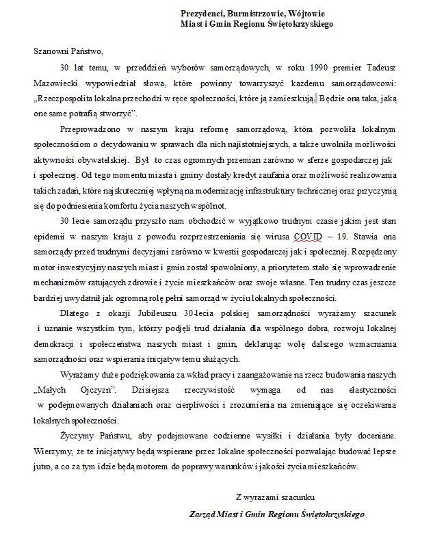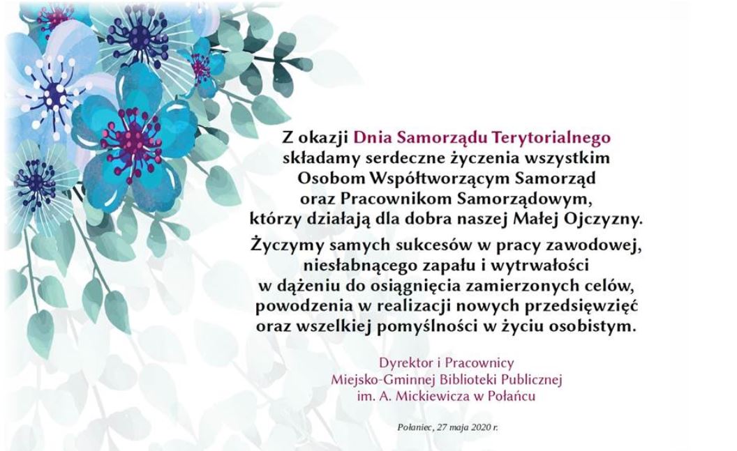 Dyrektor oraz pracownicy Biblioteki Publicznej w Połańcu składają życzenia z okazji Dnia Samorządu Terytorialnego