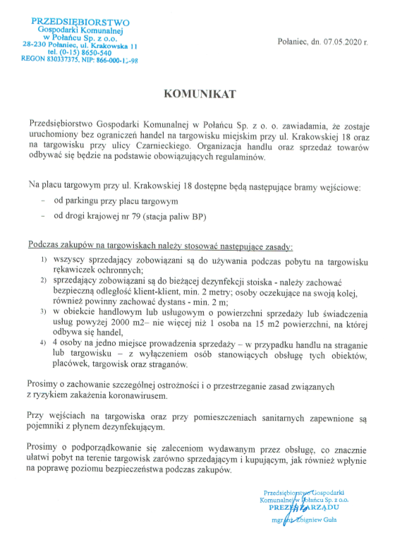 Burmistrz Miasta i Gminy Połaniec – Jacek Tarnowski informuje, że w oparciu o szeroko przeprowadzone konsultacje z dyrektorami placówek oświatowych i żłobka, pracownikami tychże placówek oraz rodzicami dzieci została wypracowana zgodna decyzja w sprawie zawieszenia działalności tych placówek 6.05.2020r. do dnia 15.05.2020r. z możliwością zmiany tego terminu.
