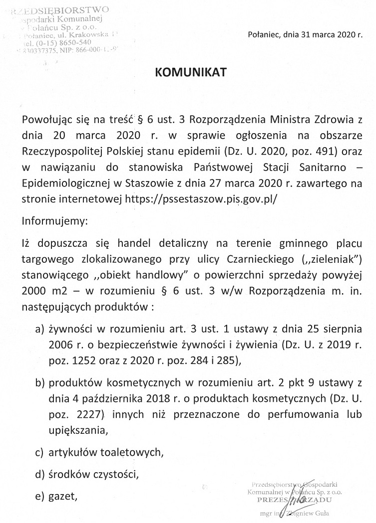 W związku z istniejącą sytuacją epidemiczną informuję, że czasopismo będzie do nabycia w najbliższych dniach w działających punktach sprzedażowych (w dotychczasowej formie ) oraz dostępne w wersji elektronicznej na stronie portal.polaniec.eu