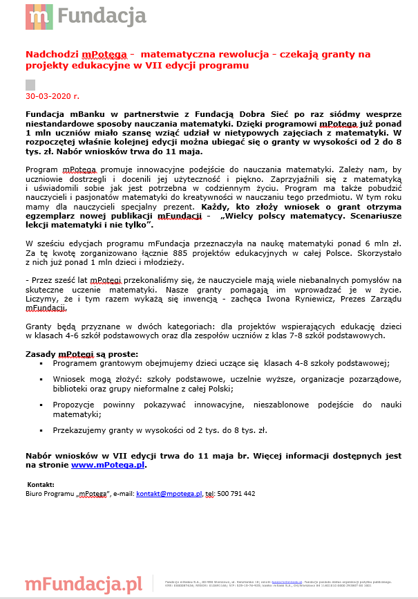 INFORMACJA DLA CZYTELNIKÓW