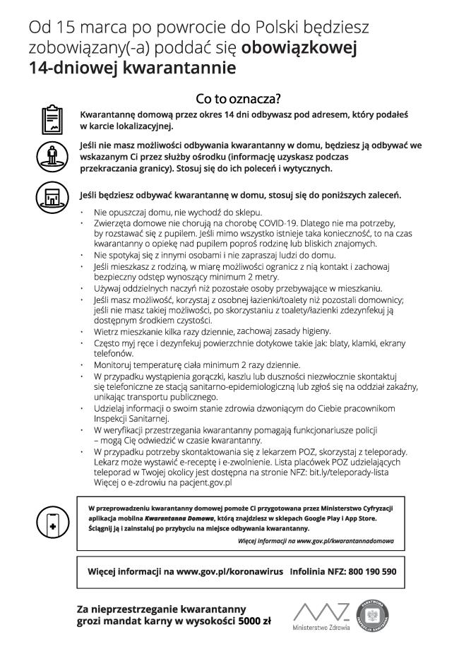 Informacje i zalecenia dotyczące koronawirusa na stronie www.gov.pl/web/koronawirus