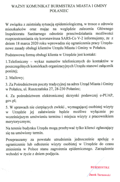 ZARZĄDZENIE BURMISTRZA MIASTA I GMINY POŁANIEC