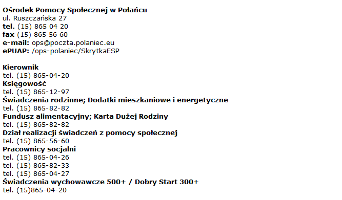 PODAJEMY RÓWNIEŻ WYKAZ NUMERÓW TELEFONÓW DO OŚRODKA POMOCY SPOŁECZNEJ