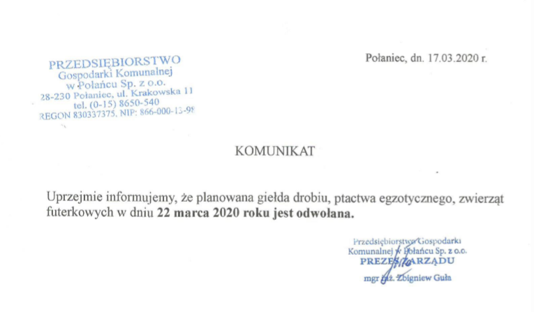 TEL. DODATKOWY w sytuacjach wyjątkowych czynny od dziś: 668 876 660