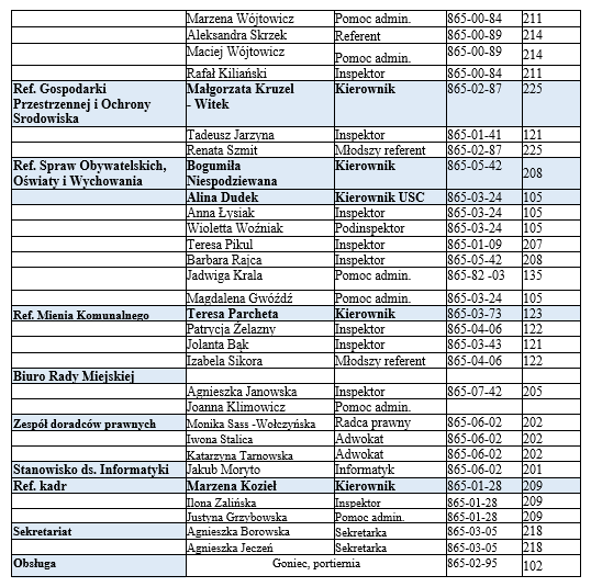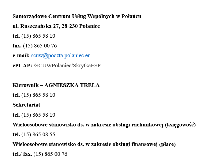 WYKAZ NUMERÓW TELEFONU DO SAMORZĄDOWEGO CENTRUM USŁUG WSPÓLNYCH