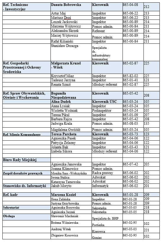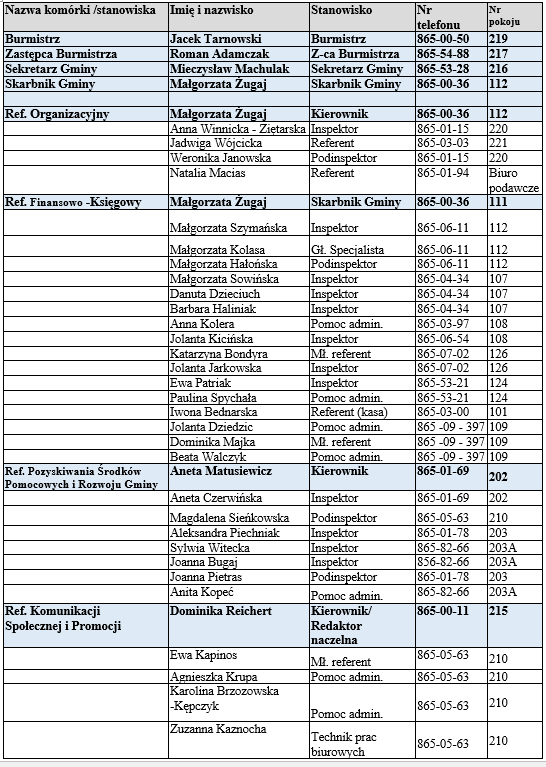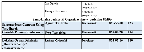 WYKAZ NUMERÓW TELEFONÓW W OŚRODKU POMOCY SPOŁECZNEJ
