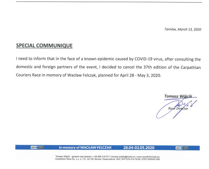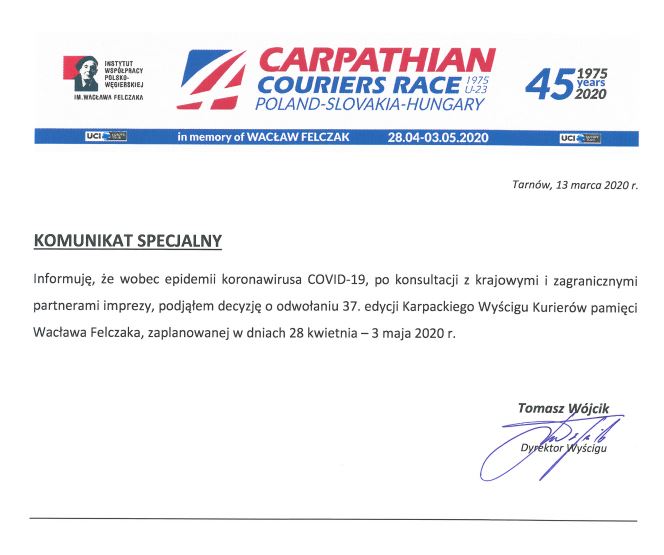 W trosce o zdrowie dziennikarzy, fotoreporterów i pracowników mediów, a także kierując się potrzebą ograniczenia możliwości rozpowszechniania się wirusa SARS-CoV-2, apeluję o nie organizowanie konferencji prasowych, briefingów i innych wydarzeń z osobistym udziałem przedstawicieli środków masowego przekazu.