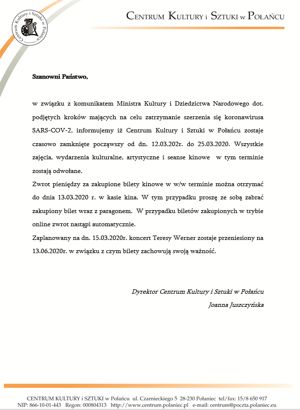KOMUNIKAT - MIEJSKO - GMINNA BIBLIOTEKA PUBLICZNA W POŁAŃCU