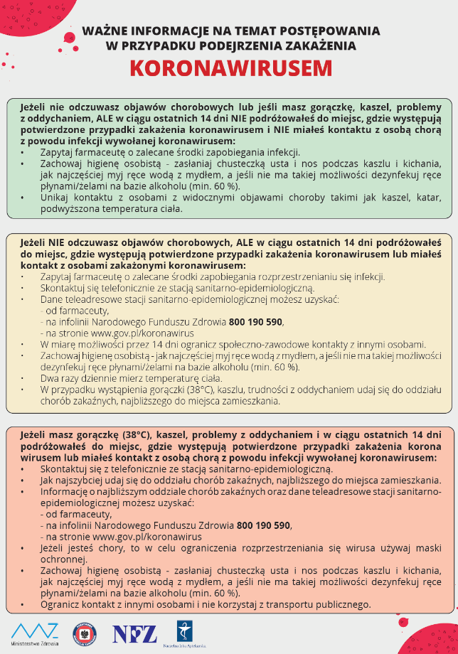 KORONAWIRUS - KOMUNIKATY, INFORMACJE I ZALECENIA