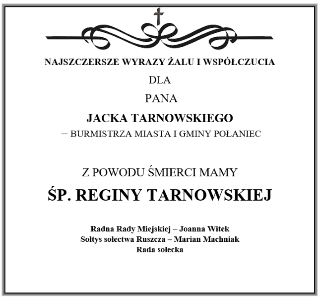Uroczystości pogrzebowe odbędą się w sobotę, tj. 7 marca 2020 roku. Msza święta rozpocznie się o godz. 13.00 w Kościele pw. Matki Bożej Wspomożenia Wiernych w Połańcu.