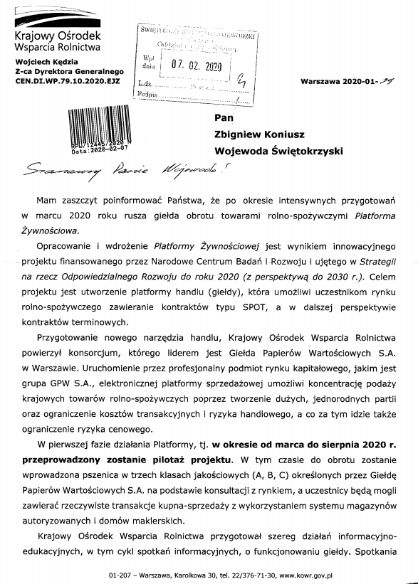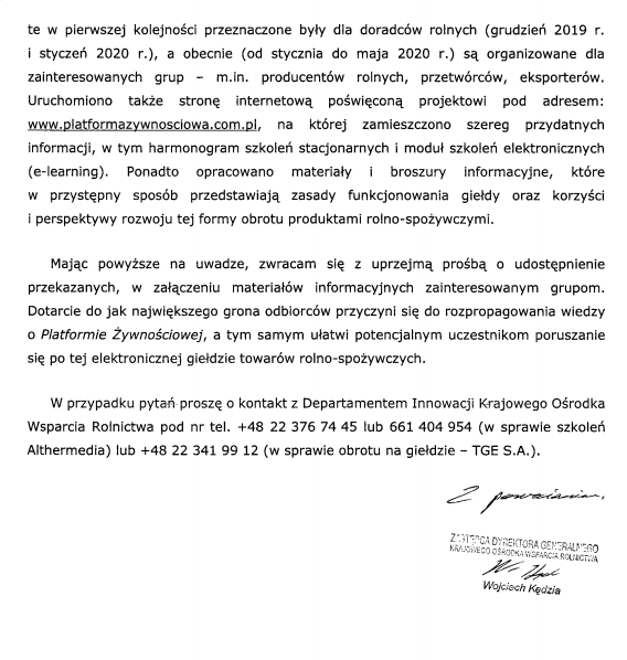 Rusza Giełda obrotu towarami rolno -spożywczymi "Platforma Żywnościowa"