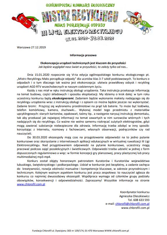 Rusza ogólnopolski Konkurs Ekologiczny Mistrz Recyklingu VI edycja
