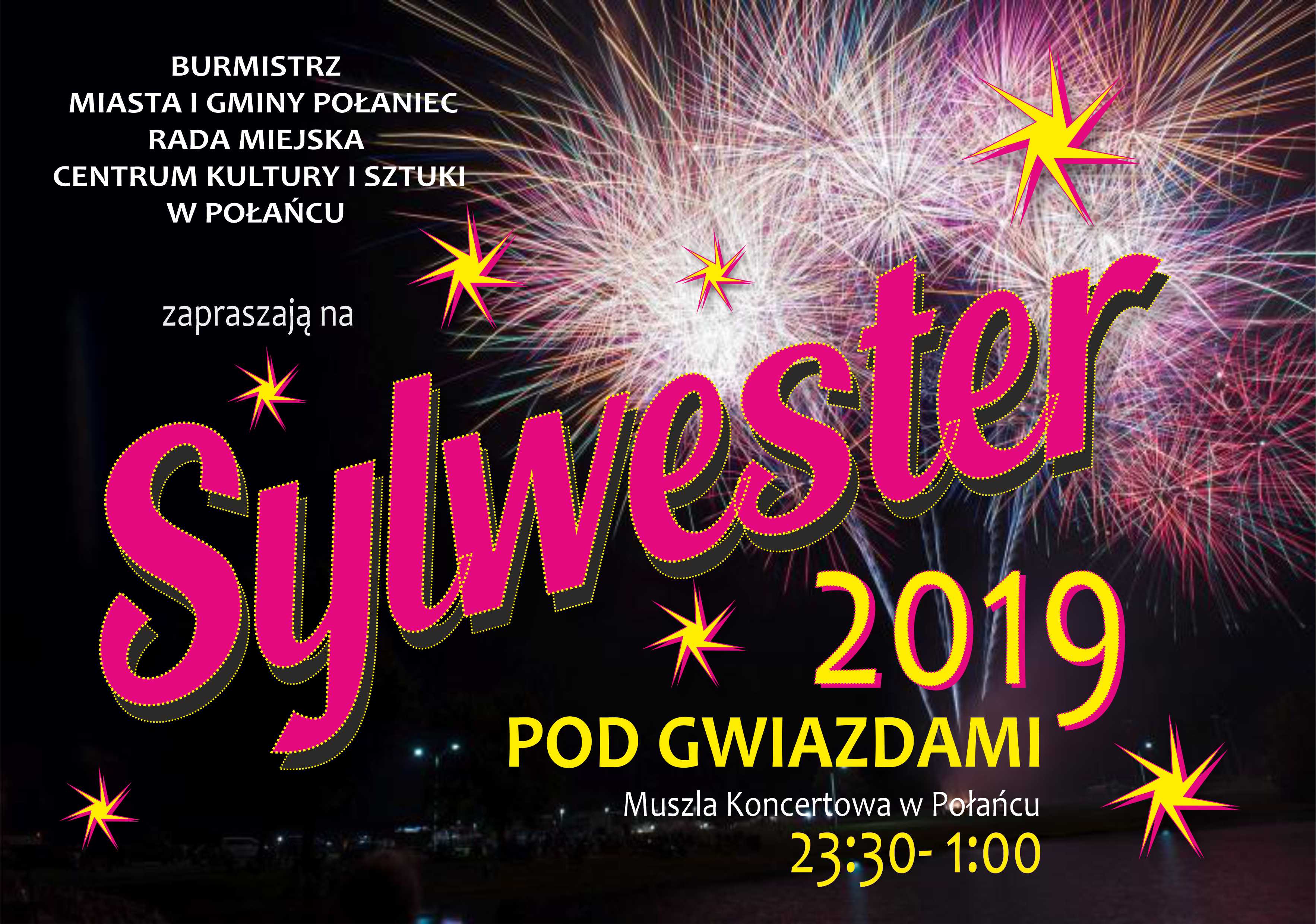 Już wkrótce jedyna w roku, niepowtarzalna noc. Znakomite towarzystwo, wspaniała zabawa i dobra muzyka to nieodłączne jej atrybuty. Zachęcamy do wspólnej zabawy i spędzenia wieczoru sylwestrowego na muszli koncernowej w Połańcu. Dokładnie o godz. 23.30 zabrzmi mega energetyczna "sylwestrowa muzyka". Jak co roku włodarze złożą wszystkim mieszkańcom i gościom życzenia noworoczne. Tradycyjnie o północy niebo rozświetlą mieniące się wszystkimi kolorami tęczy sztucznie ognie. Sylwestrowo - muzyczne spotkanie zakończymy około godz. 1.00 w nocy. Warto ten wyjątkowy wieczór spędzić z nami. A zapraszają organizatorzy: Burmistrz Miasta i Gminy Połaniec, Rada Miejska i Centrum Kultury i Sztuki w Połańcu.