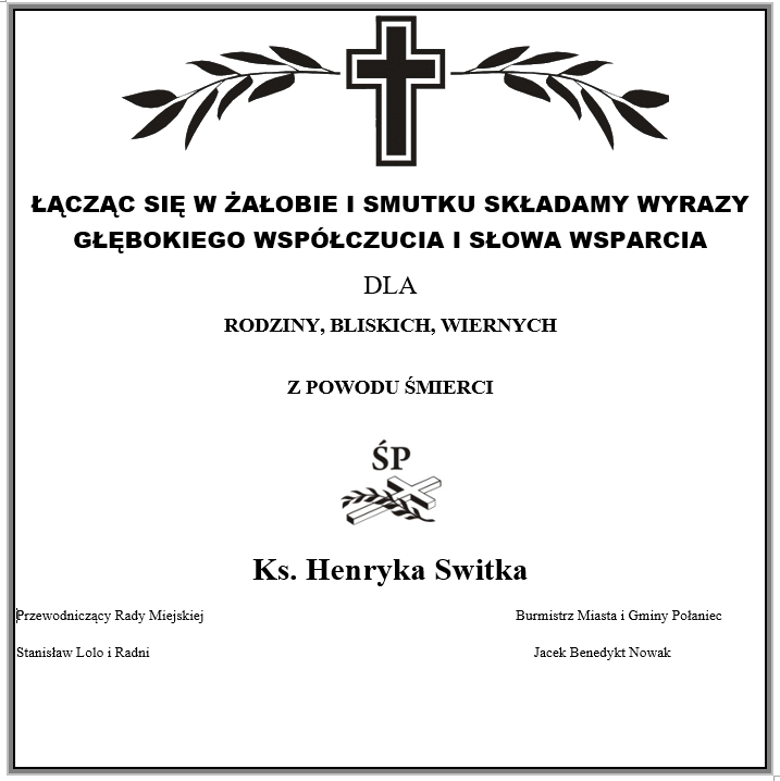 Godz. 10.00 – Msza Święta pogrzebowa w kościele pw. św. Marcina w Połańcu.