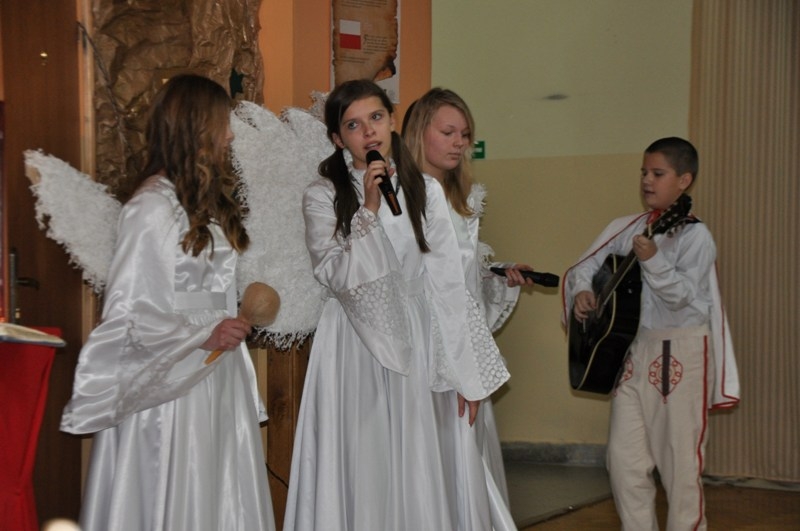 Wyjątkowy wieczór świętowało także Publiczne Gimnazjum w Połańcu, gdzie gościli przedstawiciele władz gminnych, rada rodziców, nauczyciele i pracownicy szkoły oraz Ks. Łukasz Turzyński z Parafii pw. Św. Marcina w Połańcu. Niepowtarzalny spektakl przygotowany przez uczniów, dostarczył widzom wielu pozytywnych emocji. Wszechobecne, śpiewające Anioły i światło świec wprowadziły ciepłą i rodzinną atmosferę.