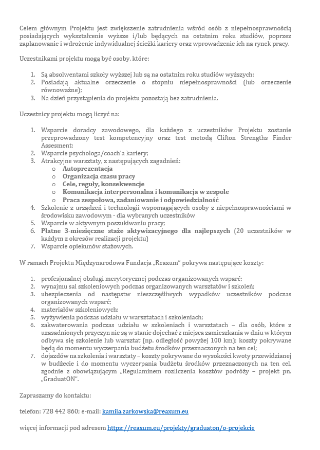Osoby zainteresowane proszone są o kontakt pod numerami telefonu: