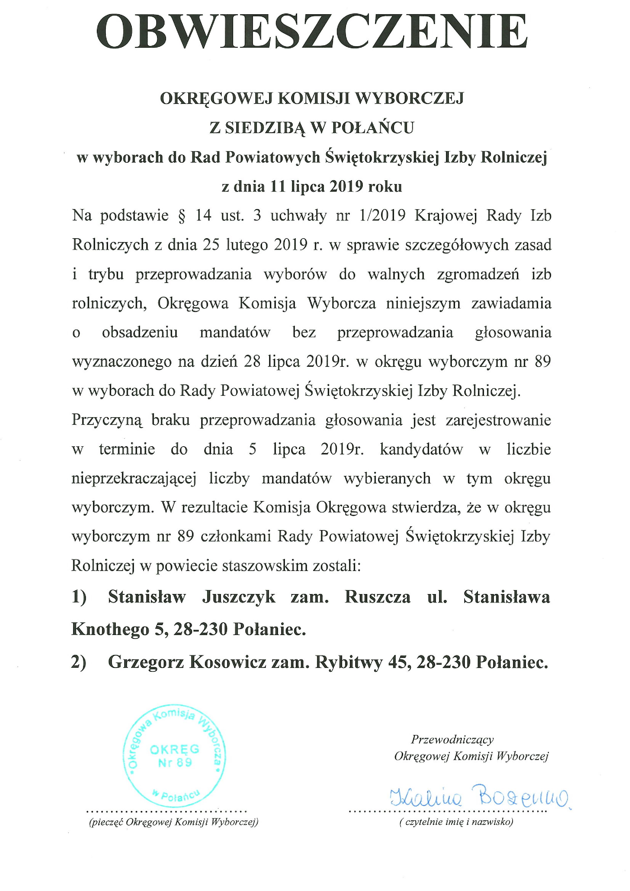 Na podstawie art. 20 ust. 3 ustawy z dnia 8 marca 1990 roku o samorządzie gminnym (t.j. w Dz.U. z 2019r. poz. 506) zwołuję sesję Rady Miejskiej w Połańcu w dniu10 lipca 2019r. - godz. 16:00.