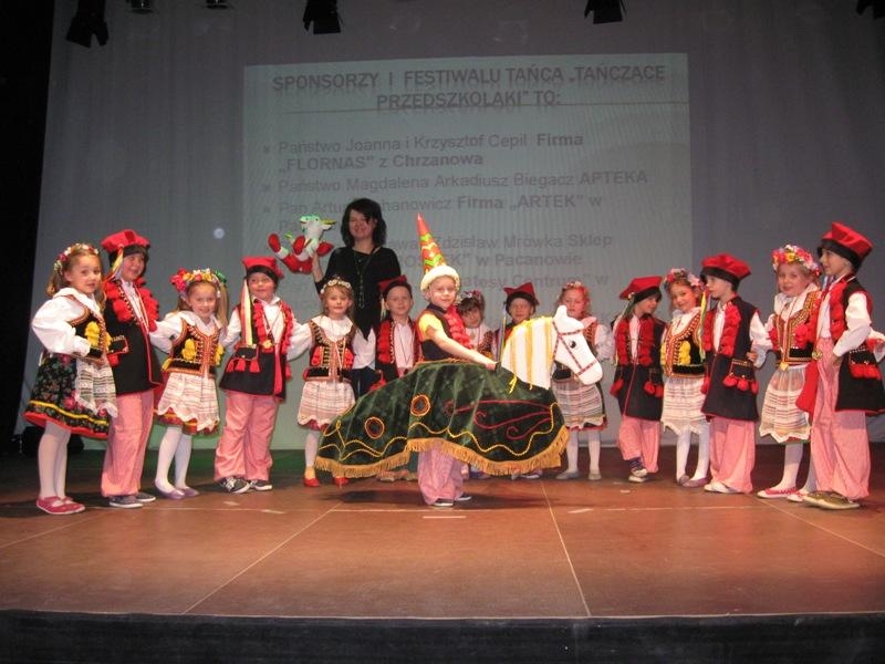 Ogromne podziękowania pragnę skierować do Pani Joanny Pietras i nauczycieli poszczególnych grup biorących udział w festiwalu: Barbary Stachury, Heleny Wawryk, Bożeny Laska i Anny Sakławskiej. Do uzyskania przez przedszkolaków takiego sukcesu przyczyniło się CKiSz w Połańcu, które wypożyczyło nam stroje i rekwizyty za co gorąco dziękujemy Pani dyrektor Joannie Juszczyńskiej. Obecnie wszystkie starszaki przygotowują się na występy podczas XIII Przeglądu Zespołów Przedszkolnych „Ekologia w wierszu i piosence”, który odbędzie się 13.04.2012r. w CKiSz w Połańcu