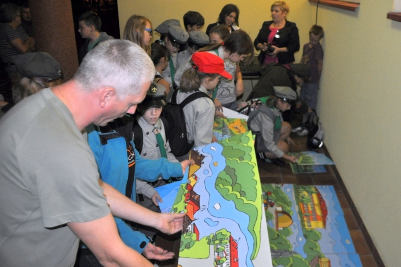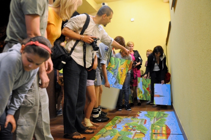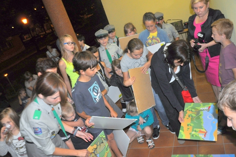 Obchody DNI KULTURY POŁANIECKIEJ rozpoczęły się w dniu 12 września b.r. Całe miasto rozbrzmiewało muzyką Czerwonych Gitar, która popłynęła z przed budynku Centrum Kultury i Sztuki. O godzinie 18:30 przed budynkiem zebrał się spory tłum mieszkańców miasta i gminy Połaniec. Najmłodsi mieszkańcy przyszli z rodzicami, zjawiła się młodzież, dorośli, a nawet zastęp harcerzy z Ruszczy. Wszyscy przybyli by wspólnie uczestniczyć w NOCY KULTURALNEJ, w ramach której jedną z atrakcji była gra plenerowa – podchody. Trzy grupy uczestników ruszyły w miasto podążając za strzałkami i znakami, by kolejno zdobywać punkty i odnajdywać koperty z szyframi, zagadkami matematycznymi i zadaniami. Grupy pomyślnie pokonały trzy trasy, które wiodły do Kościoła MBWW, na Kopiec T. Kościuszki oraz do Kościoła Św. Marcina i wróciły do Centrum Kultury i Sztuki, by wspólnie ułożyć ogromne puzzle z panoramą miasta i gminy Połaniec. Ułożenie puzzli wcale nie było takie łatwe i uczestnikom pomagał sam autor panoramy – malarz Aleksander Yasin.