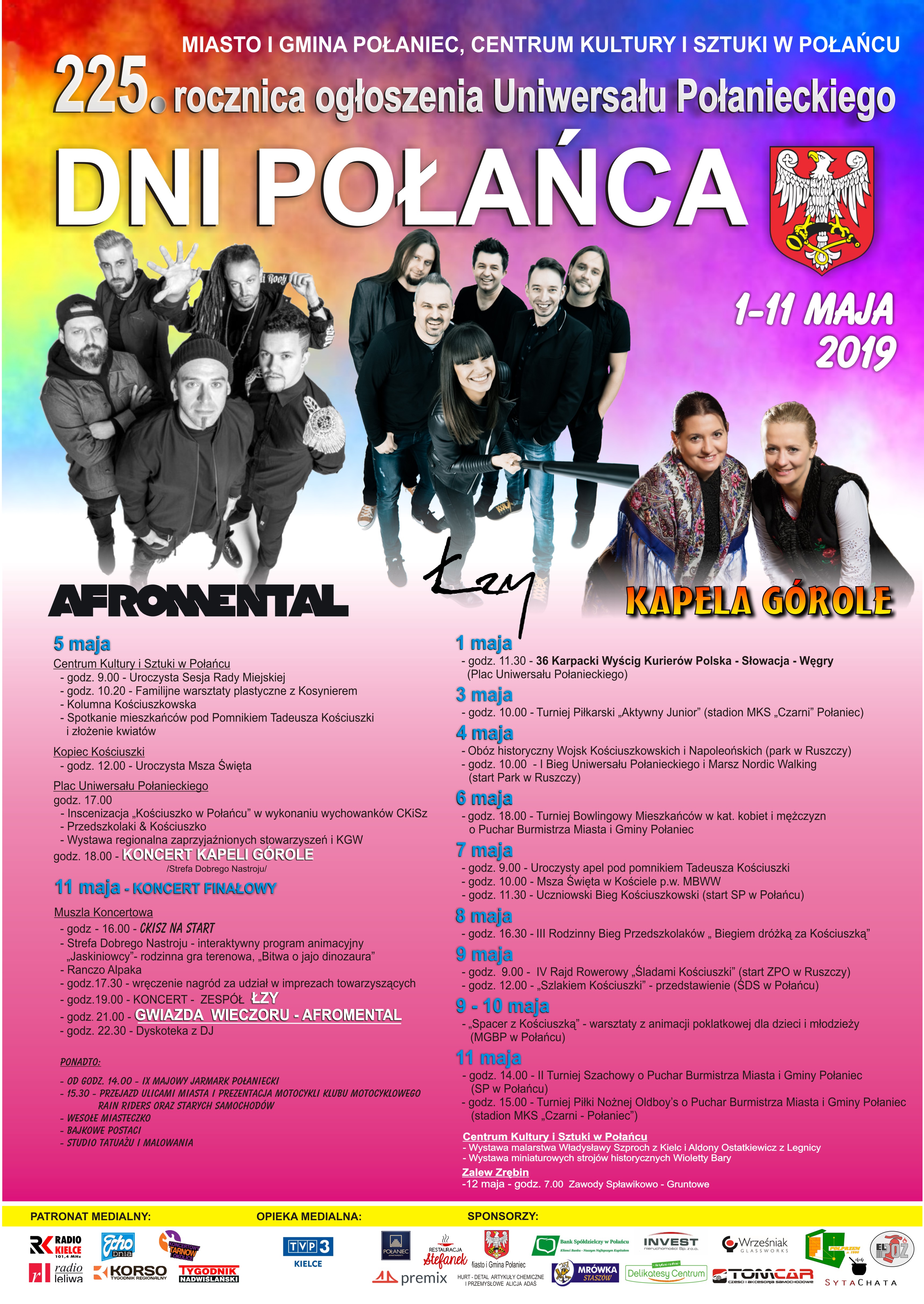 Dni Połańca to najważniejsze wydarzenie dla całej Gminy i jej mieszkańców. To największa impreza plenerowa i najlepsza zabawa oparta na pokazach, programach rozrywkowych, koncertach, okraszona wieloma atrakcjami, pozwalająca uwolnić w mieszkańcach energię i przeżyć szczególne chwile. Obchody Dni Połańca mają zawsze akcent patriotyczny. W tym roku minęła 225. Rocznica Ogłoszenia Uniwersału Połanieckiego. Tradycyjnie już było uroczyście i patriotycznie. Świętowanie rozpoczęto uroczystą sesją Rady Miejskiej w Centrum Kultury i Sztuki w Połańcu. Dla nas, połańczan, postać Naczelnika ma szczególne znaczenie. 7 maja 1794 roku w Połańcu ogłosił tzw. „Uniwersał połaniecki”. Znosił on poddaństwo osobiste chłopów, zwolnienia od pańszczyzny dla walczących oraz prawo nieusuwalności z użytkowanego gruntu. Akt ten stanowił uwieńczenie wielu rozporządzeń i proklamacji wydanych przez Kościuszkę w sprawie chłopskiej od chwili rozpoczęcia insurekcji. To Jego postać i wydarzenia historyczne tamtych lat były rozpatrywane podczas niedzielnych uroczystości.